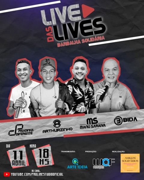 A live contará com a participação de Arthuzinho, Manú Saraiva, Bida ex-Baby Som e Pisadinha Diferente. A transmissão será pelo canal Proline Studio Oficial no YouTube.