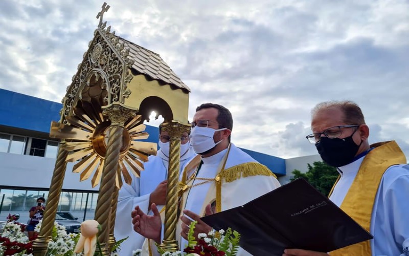 Durante o cortejo pelas ruas de Barbalha aconteceu a benção com o Santíssimo Sacramento em três momentos: na entrada da cidade, em frente ao Hospital Santo Antônio e no Hospital São Vicente.